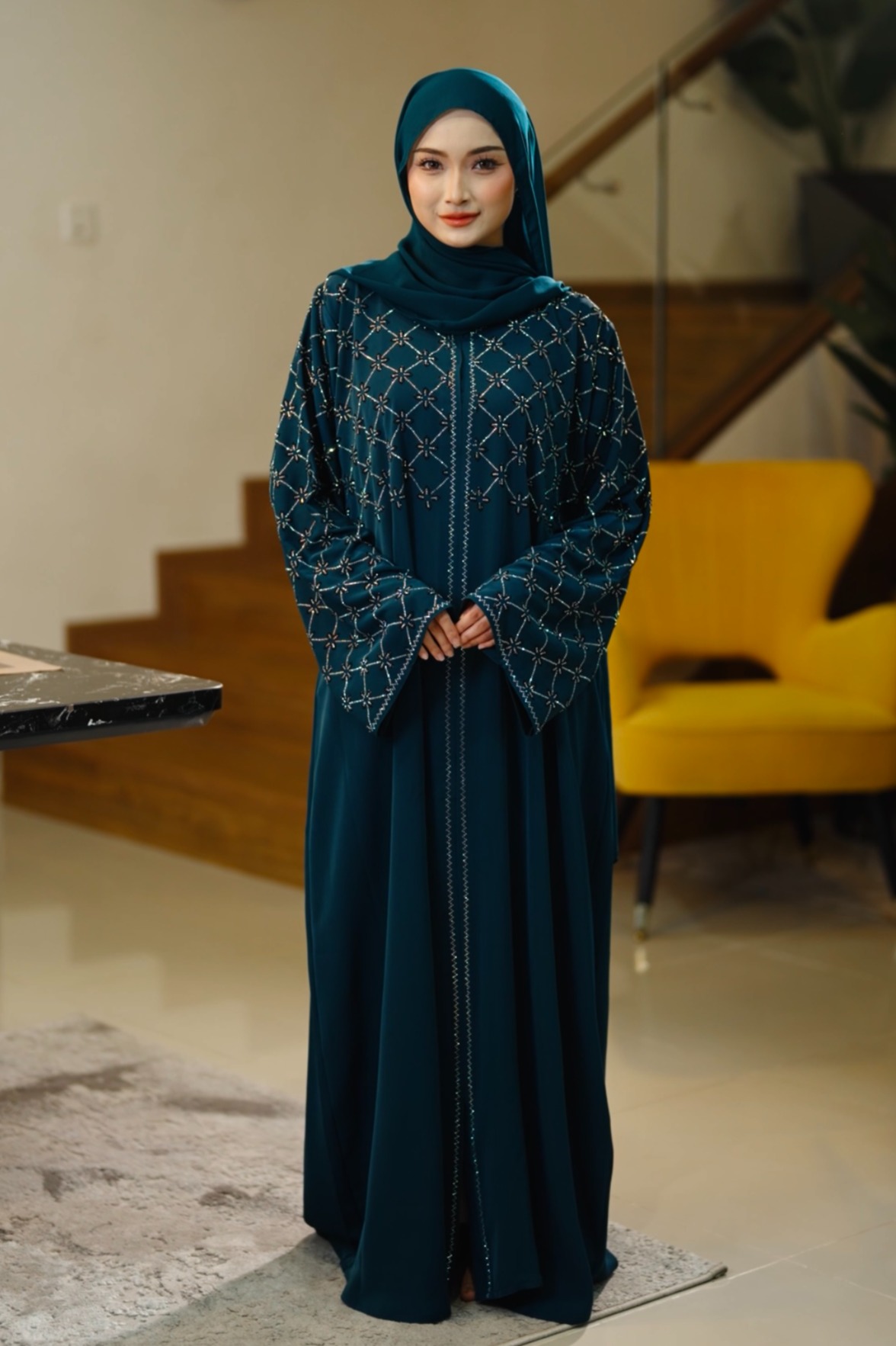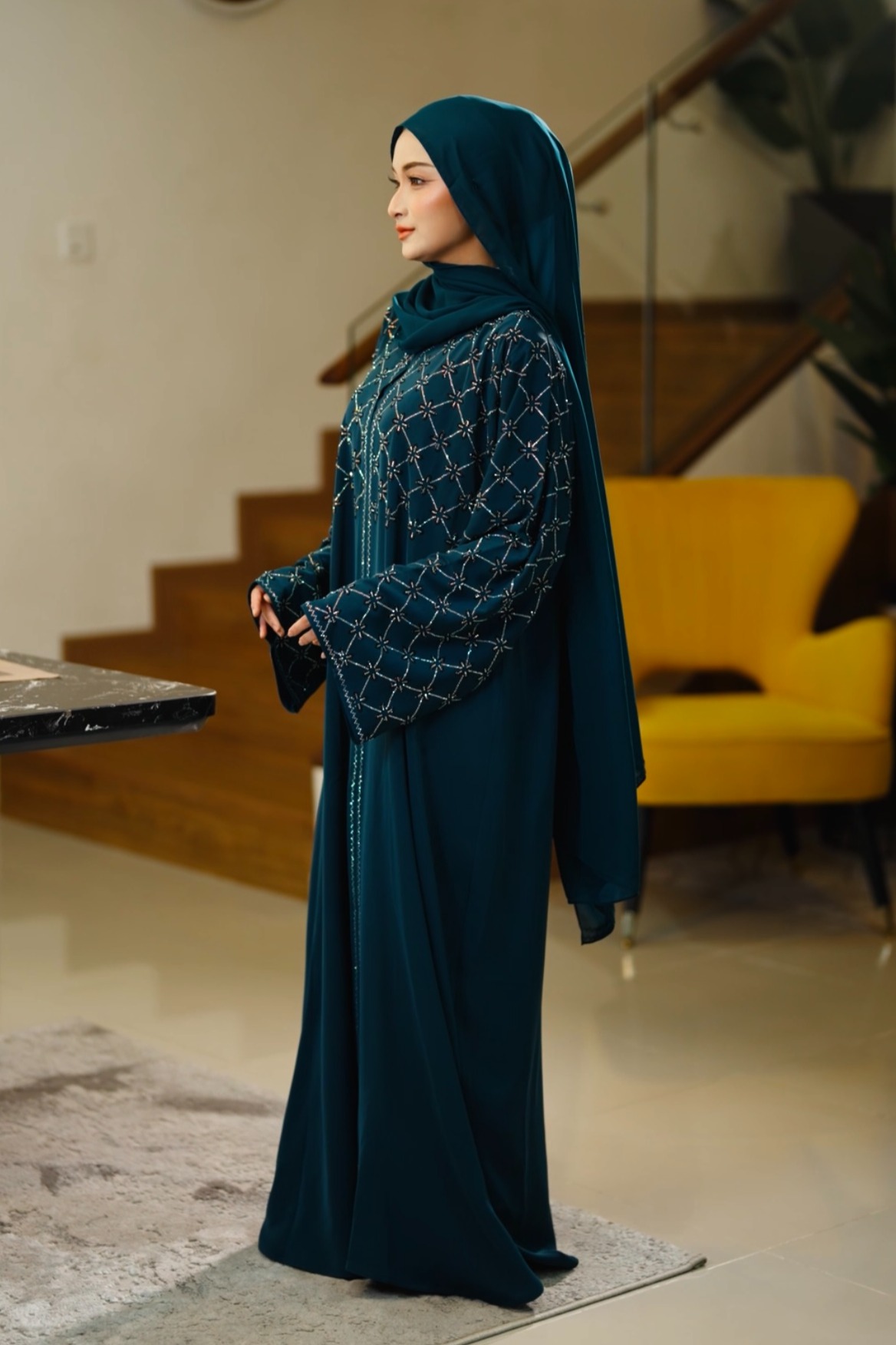 - Embellishment :Close front abaya with exclusive handwork beads at full body